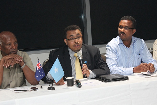 Ma,uuliyiintii kulankaasi ka hadashay waxaa ka mid ahaa DR. Maxamad Cali Xaamud oo horey u soo noqday wasiirka arrimha dibadda Soomaliya, isagoona sheegay in jaaliyadda Soomalida ee ku nool waddanka Australia laga doonayo in dawr muuqda ay ka qaataan taageerada dawladda cusub ee soomaliya.