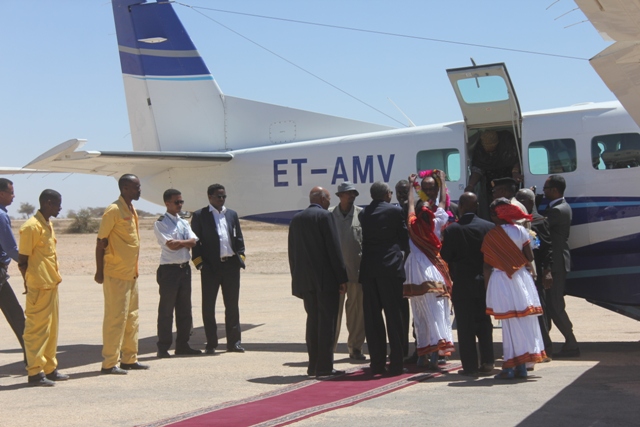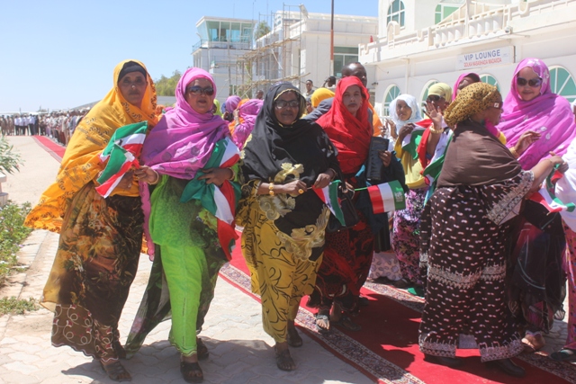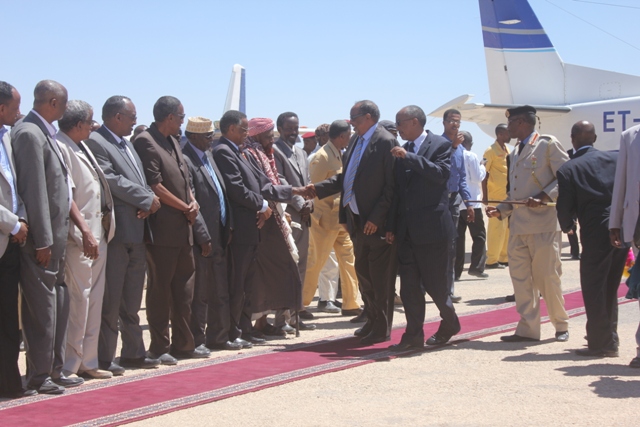Madaxweynaha waxa madaarka Hargeysa ku soo dhoweeyey madaxweyne ku xigeenka Md:Cabdiraxmaan Ismaaciil Saylici, wasiiro iyo dadweyne kale oo ka qaybgalay soo dhoweyntiisa, waxaanu halkaasi salaan kaga qaatay cutubyo ka tirsan ciidanka.