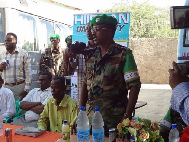 Prof. Ibraamin Cumar Mahad oo ku hadllayay magaca Jaamacada Hiiraan University ayaa wax lagu farxo ku tilmaamay kulanka ay wada qaadanayaan bahda warbarashada gobollka iyo saraakiisha AMISOM, isaga oo qiray marka laga soo tago howlaha militari in ciidamada Jabuuti kaali weyn oo muuqata ka qaateen soo nooleynta rajada mushtamaca ku dhqan magaalada Baladweyne oo ka hor imaashahooda sida uu hadalka u dhigay mugdi badan uu ku jiray.