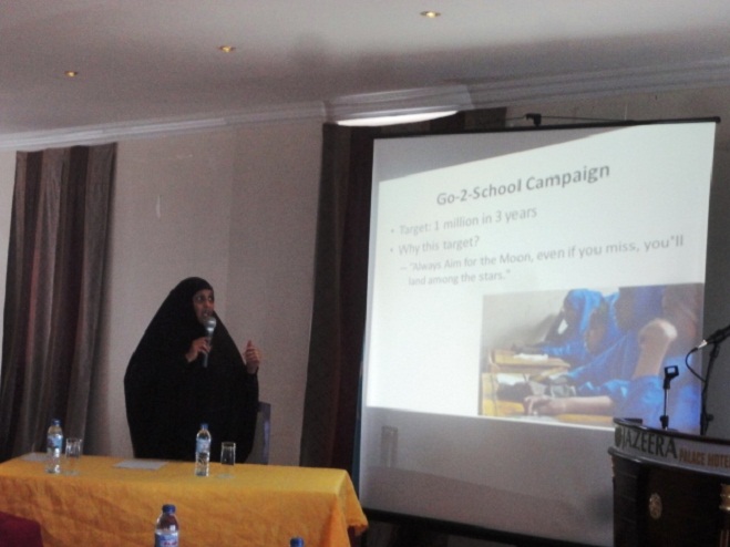 “Wasaaraddu iyadoo ka duulaysa arrintaas, kana damqaneysa waxay isku duba-ridday qorshe waxbarasho oo ballaaran kaasoo aan jecelnahay inay ka faa’iideystaan arday gaaraysa hal milyan oo uu kala qaybsan heerarka kala duwan ee waxbarashada, waxaana hirgelinta qorshahaas gacan naga siinaya qaar ka mid ah hay’adaha Qaramada Midoobay oo dhawaan aan kula soo kulmay Nairobi.” ayay tiri wasiiradda.