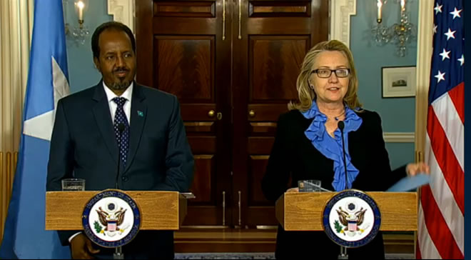 Kulankaas kaddib ayuu Madaxweyne Xasan Sheekh wuxuu sidoo kulan la qaatay Xoghayaha Arrimaha Dibadda ee dalka Mareykanka Hillary Clinton xarunta wasaaradda arrimaha dibadda ee Mareykanka (State Departement) halkaas oo si rasmi ah dowladda Mareykanka u ictiraaftay dowladda Soomaaliya.