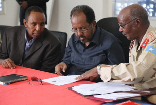 Sabti, July 20, 2013 (HOL) — Madaxweynaha dowladda Soomaaliya, Xasan Sheekh Maxamuud ayaa maanta kulan muddo saacado ah qaatay la yeeshay saraakiisha ciidamada xoogga dalka, isagoo kala hadlay sidii ammaanka loo xoojin lahaa.
