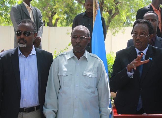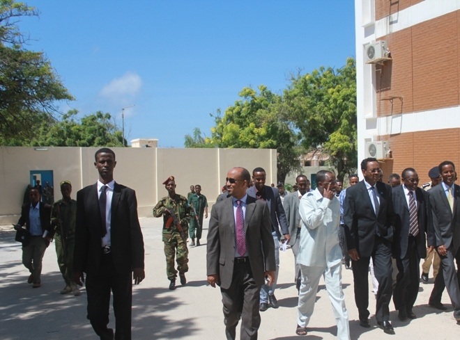 Khamiis, July 04, 2013 (HOL) — Ra’iisul wasaaraha Somalia, Cabdi Faarax Shirdoon ( Saacid) oo ay wehliyaan xubno ka tirsan wasiirrada xukuumadda, guddoomiyaha gobolka banaadir, taliyayaasha ciidamada dowladda iyo gudoomiyeyaasha degmooyinka gobolka Banaadir ayaa si rasmi ah u furay barnaamij muddo laga soo shaqaynayay oo lagu xoojinayo amniga Muqdisho.