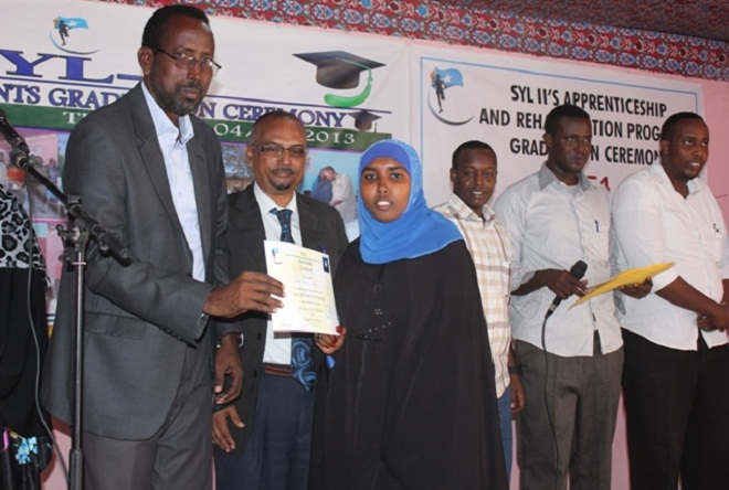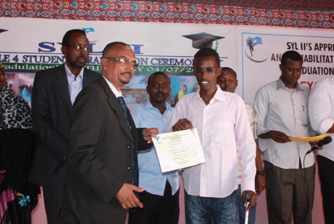 Khamiis, July 04, 2013 (HOL) — Ururka dhallinyarada SYL II oo ah urur ka shaqeeya arrimaha horumarinta dhallinyarada Soomaaliyeed ayaa maanta ku qabtay Muqdisho xaflad shahaadooyin lagu guddoonsiiyay arday bartay xifado kala duwan oo ay ku shaqeystaan.
