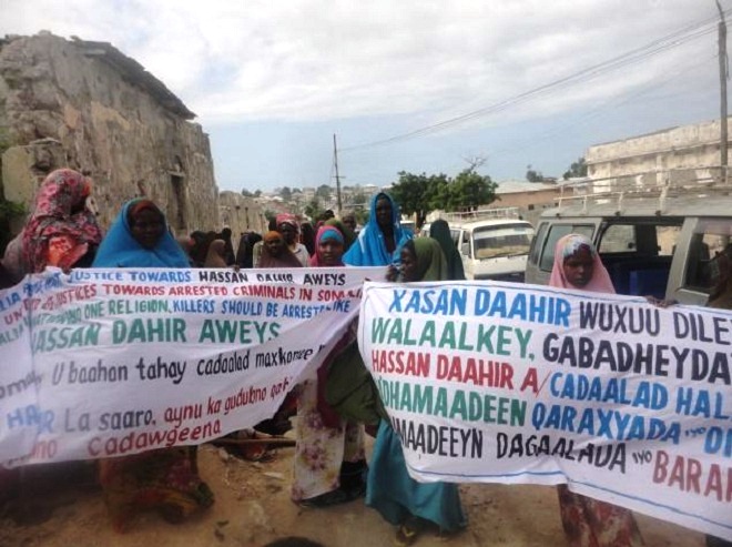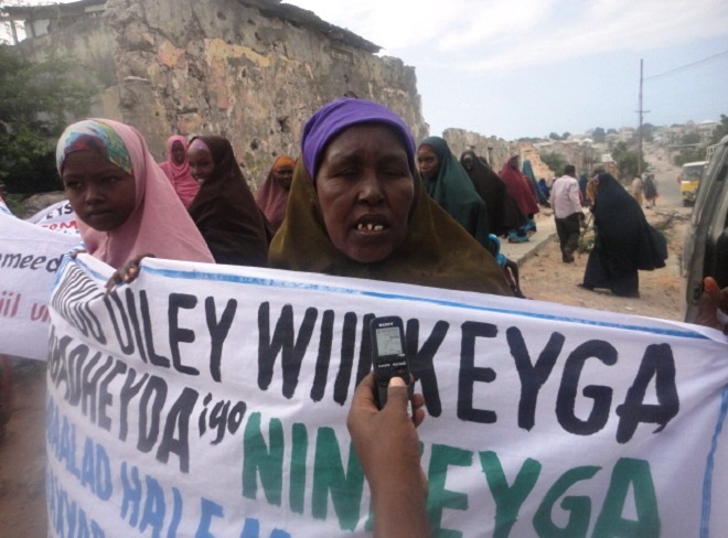 “Dowlada waxaan si naxariis leh uga codsanaynaa inay wadaadkan sida ugu dhaqsiyaha badan ku horkeento maxkamad, waayo waa gacan ku dhiigle ka mid ahaa Al-shabaab; dadkii uu eheladooda laayay waxay doonayaan inay arkaan isagoo sharciga la mariyay,” ayay ku qaylinayeen haweenkan maanta dibadbaxa ka dhigay Muqdisho.
