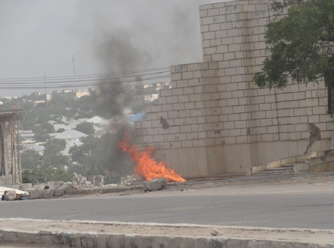 Dhoolla-tuskan ayay ciidamadu ku sameeyeen qarax iyadoo ay goobta soo gaareen gaadiid ay ciidamadan leeyihiin oo damiyay dabkii, waxaana sidoo kale soo gaaray goobta ciidammo kale oo loogu talogalay inay gurmad caafimaad u fudiyaan dadka qaraxyada wax ku noqda.