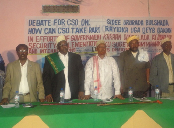 Isniin, Juun 24, 2013 (HOL) — Kulan looga hadlay sida ururrada bulshada rayidka ah ay uga qaybqaadan lahaayeen dadaallada loogu jiro sidii lagu sugi lahaa ammaanka ayaa maanta lagu qabtay Muqdisho, iyadoo ay kasoo qaybgaleen odayaasha dhaqanka, nabadoonno, haween iyo dhallinyaro.