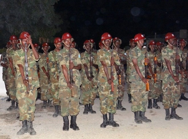 Ugu dambeyn, waxaa 12:00 habeenimo ee saqdii dhexe ee xalay la saaray calanka buluugga ah ee dhexda xidigta ku leh ee ay Soomaaliya caanka ku tahay, iyadoo madaxda dowladdu ay salaan-sharaf ka qaateen cutubyo ka tirsan ciidamada xoogga dalka.