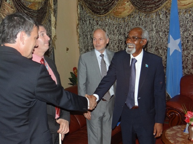 Isniin, Juun 03, 2013 (HOL) — Guddoomiyaha baarlamaanka Soomaaliya, Prof. Maxamed Sheekh Cismaan (Jawaari) isla markaana ah sii hayaha xilka madaxweynimo ee Soomaaliya ayaa maanta kula kulmay Muqdisho ergayga cusub ee Qaramada Midoobay ay u soo magacowday Soomaaliya, Nicholas Key.