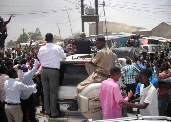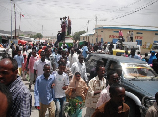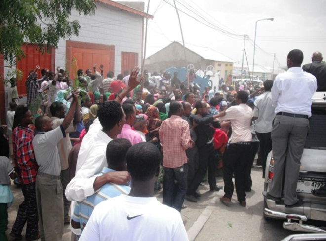 Boqolaal dadweyne ah ayaa isugu soo baxay waddooyinka waaweyn ee degmadaas, kuwaasoo gacmaha u haatinayay Prof. Samatar oo gaari dusha ka furan saarnaa, halkaasoo uu dadka ka salaamayay.