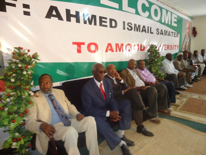 Ugu horeyn waxaa goobta ka hadlay gudoomiyaha jaamacadda Camuud Prof. Saleebaan Axmed Guuleed, wuxuuna si diiran usoo dhoweeyey aqoonyahan Samatar, isagoo intaas kadibna ka sheekeeyey taariikhda jaamacadda iyo marxaladihii kala duwanaa ee ay soo martay.