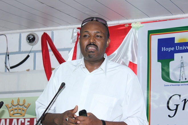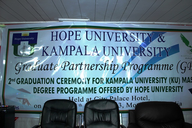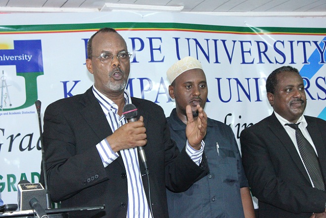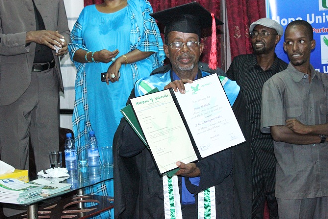 Hormuudka jaamacadda Hope University, Prof. Najiib Sheekh Cabdikariin oo munaasabada furay ayaa sheegay in ardaydan ay wax ka barteen Kampala University iyagoo ku sugan Muqdisho, iyadoo ardayda oo dhan ay ahaayeen rag.