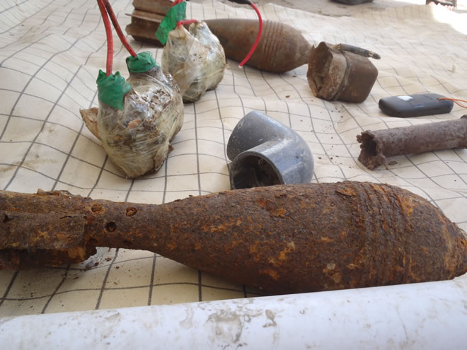 Sabti, 23 Maarso, 2013(HOL) - Ciidamada nabadsugidda degmada Kismaayo ayaa maanta soo bandhigay Walxaha qarxa oo ay saaka kasoo bixiyeen mid kamid ah wadooyinka waaweyn ee magaalada Kismaayo.