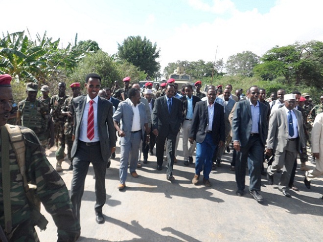 Sabti, Maarso 30, 2013 (HOL) — Ra’iisul wasaaraha Soomaaliya, Cabdi Faarax Shirdoon (Saacid) iyo wafdi uu hoggaaminayo oo isugu jira wasiirro iyo xildhibaanno, aynaka mid ahaayeen, wasiirka arrimaha gudaha iyo amniga Qaranka iyo wasiirka gaashaandhiga ayaa maanta booqasho ku tagay degmada Jowhar ee xarunta gobolka Shabeellada Dhexe, iyagoo la kulmay waxgaradka iyo maamulka.