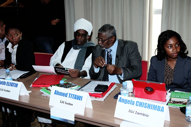 Shirweynaha ayaa waxaa ka hadlay hoggaanka ugu sareeya ee ururka suxufiyiinta Adduunka ee IFJ, Jim Boumelha isagoo is-dul-taagay doorka ururka suxufiyiinta Adduunka ee u aaddan taageeridda iyo garab-istaagga suxufiyiinta Afrika iyo urarradooda.
