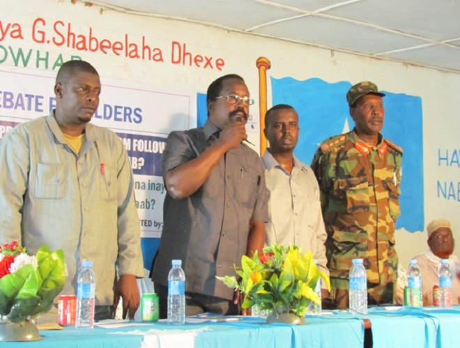 Jen. Maxamed Maxamuud Saney oo ka mid ah saraakiisha dowladad oo isna goobta ka hadlay ayaa sheegay in loo baahan yahay in la iska kaashado sidii loo adkeyn lahaa nabadda, isagoo odayaasha weydiistay inay door muuqada ka qaataan nabadeynta, waxaana uu ka dhawaajiyay in xoreynta gobolka ay meel wanaagsan mareyso.