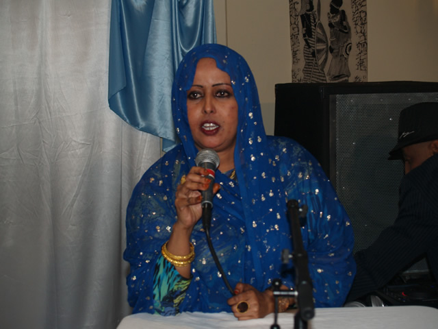 ”Hadda waxaan rabnaa in door ka qaadanno nabadda iyo dib-u-heshiisiinta waxaana dooneynaa in aan gogol nabadeed dhigno magaalooyinka Boosaaso, Muqdisho iyo Kismaayo, halkaasna looga hadlo aayaha dalka Soomaaliyeed iyo in ay dadka intey gacmaha isqabsadaan ay meel uga soo wada jeestaan dib-u-dhiska dalkooda oo muddo dheer burbursanaa”ayay tiri Sahra Barqadle oo intii ay munaasabadda socotay haddiyad la guddoonsiiyay, taasi oo ay ku heshay doorkeeda ku aaddan wax-u-qabashada dumarka Soomaaliyeed.