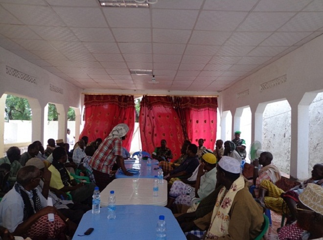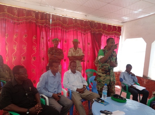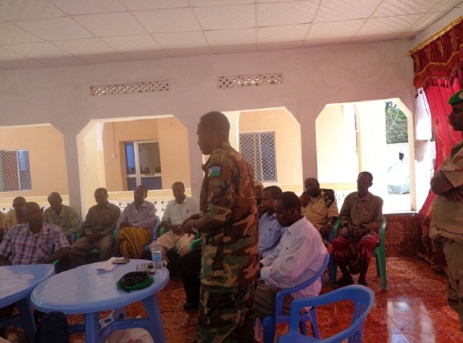 Taliyaha ciidamada Jabuuti ee howlgalka midowgga Africa AMISOM Col Cismaan Dubad oo ka hadllay kulanka ayaa uga mahad celiyay odayaasha sida ay mar walba u bar bar taagan yihiin ka shaqeynta amniga, isaga oo dhinaca kalana ku boogadiyay sida ay u aqballeen in wixii hub ah ee wali ku harsan beellaha lagu wareejiyo maamulka.
