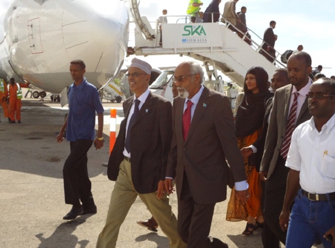 Jimco, May 03, 2013 (HOL) — Guddoomiyaha baarlamaanka Soomaaliya, Prof. Maxamed Sheekh Cismaan Jawaari iyo wafdi uu hoggaaminayo ayaa maanta dib ugu soo laabtay dalka kaddib socdaal shaqo oo uu ku tagay dalka Turkiga, isagoo lasoo kulmay mas’uuliyiinta Turkiga iyo ardayda Soomaaliyeed ee wax ka barta dalkaas.
