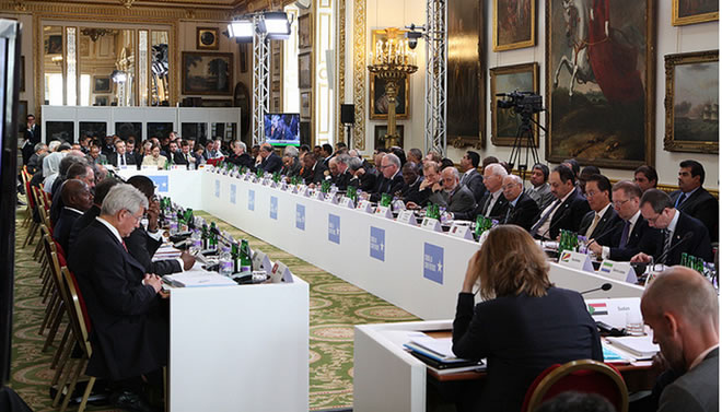 Talaado, May 07, 2013 (HOL) — Aqalka Lancaster ee magaalada London ee dalka Britain waxaa si rasmi ah uga furmay shirkii looga hadlayay horumarinta Soomaaliya; kaasoo ay kasoo qayb-galeen xubno ka socda illaa 58 dowladood iyo hay’ado caalami ah oo ay ka mid yihiin Midowga Afrika iyo Qaramada Midoobay.