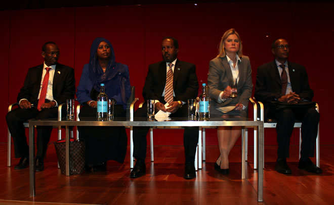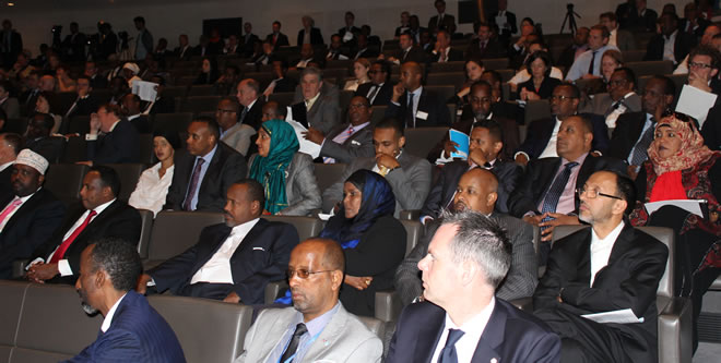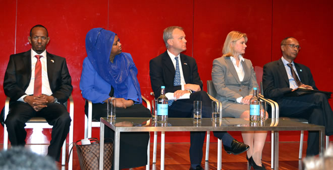 Waxaa ugu horeyntii halkaas khudbad ka jeediyey wasiirka arrimaha Afrika ee dalka Britain oo halkaas ku soo dhaweeyey madaxweyn Xasan Sheekh iyo wafdigiisa. Waxaa halkaas sidoo kale ka hadlay Wasiirradda dhaqaalah ee dalka Britain Justin Greening oo warbixin dheer ka bixisay fursadaha ka jira in la maal gashto Soomaaliya oo ku sheegtay in uu yahay wadan hodan ah. Waxayna sheegtay in ay dowladda Britain ay ku kaalmeyndoonta Soomaaliya $140 million Dollar oo lagu horumarinayo wax soo saarka Beeraha iyo dhoofinta xoolaha.