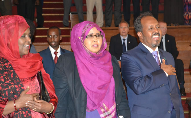 Qudbadda Madaxweynaha ka hor ayaa waxaa halkaas ka hadlay Duqa magaalada Moqdisho Maxamuud Axmed Nuur Tarzan oo warbixin kooban ka bixiyey xaaladda magaalada Moqdisho. "Moqdisho dhibaatadii iyo rafaadkii waa ka baxday, magaalada dhismo ayaa ku socoda. Ha sugana in dad kale wax idiin dhiso. Horumarka Xamar adinka ayuu indin sugayaa" ayuu hadalkiisii ku soo gabagabeeyey mudane Tarsan.