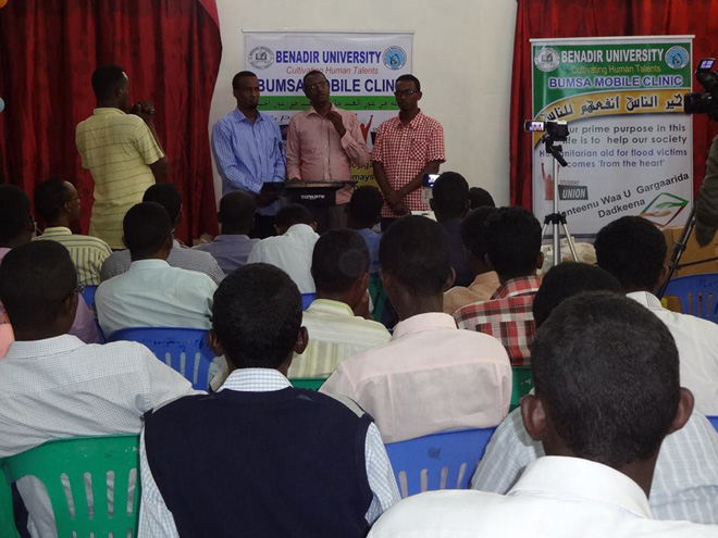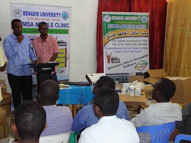 Talaado, November 12, 2013 (HOL) — Munaasabad gurmad loogu dirayay dadka ay fatahaaduhu saameyeen ee deggen gobolka Shabeelada Dhexee gaar ahaan magaalada Jowhar laguna sagootinayay dhakhaatiir iyo arday wax ka barata jaamacadda Banaadir qaybteeda caafimaadka ayaa lagu qabtay Muqdisho.