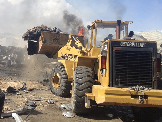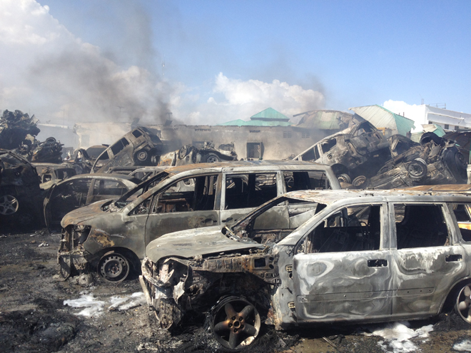 Dabkan oo aan illaa iyo hadda aan la ogeyn wuxuu ka dhashay ayaa wuxuu gubay boqolaal gaadiid ah oo ganacsi ahaan dhawaan looga keenay dalka dibaddiisa, iyadoo sidoo kalena ay ku gubteen fuustooyin shidaal uu ku jiray iyo dhismayaal.
