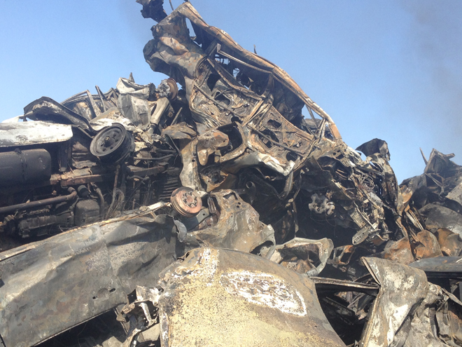 Halka uu dabku ka kacay oo aan gaarnay innagoo koox ah oo ka soconnay shabakadda Hiiraan Online ayaa waxaan ku aragnay gaadiid fara badan oo gubtay, fuustooyin shidaal uu ku jiray oo qarxay iyo dukaammo uu burbur xooggan kasoo gaaray dabka.