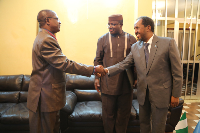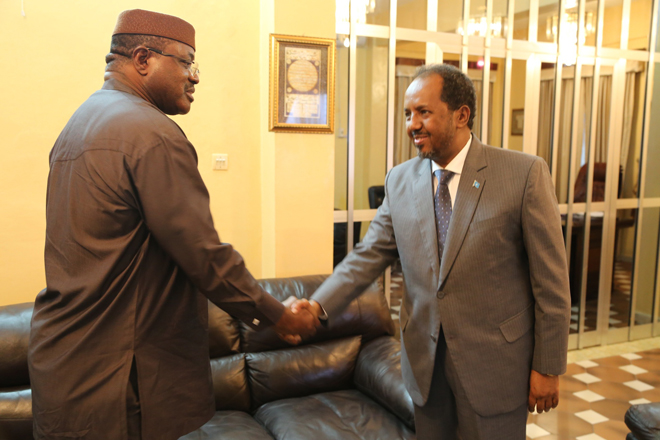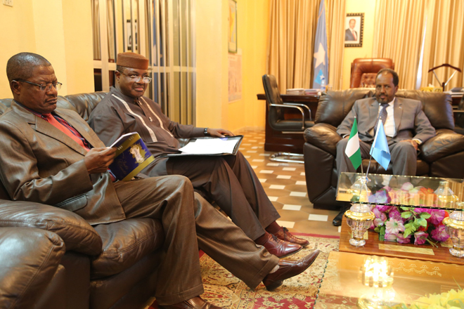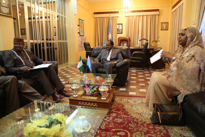 Safiirka Najeeriya ayaa wuxuu madaxweynaha u gudbiyay warqad uu ka siday madaxweynaha Nijeeriya, Jonathan Goodluck taasoo lagu casuumay madaxweynaha Soomaaliya inuu booqasho rasmi ah ku tago dalka Nijeeriya.