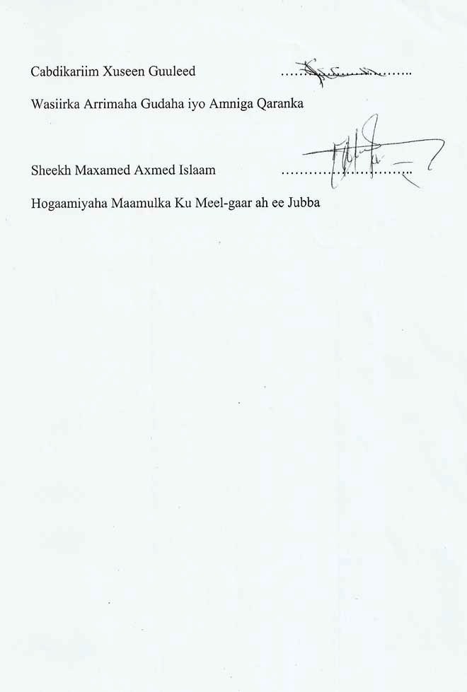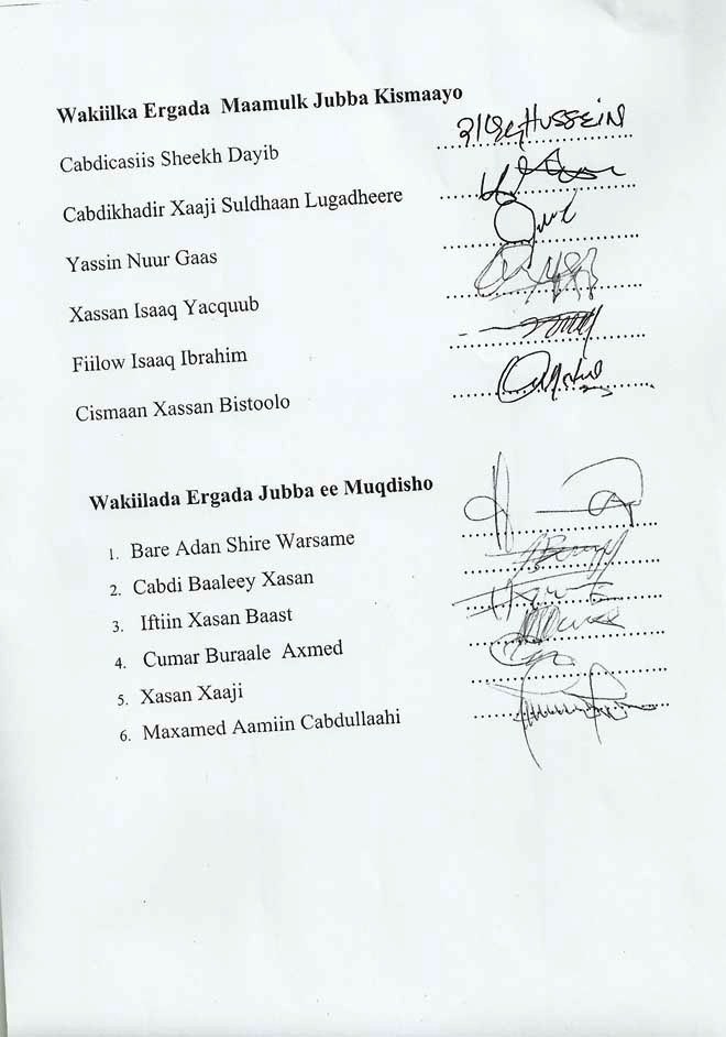 Qodobbada lagu heshiiyay ayaa waxay ahaayeen lix qodob, iyadoo sidoo kalena lasoo bandhigay saxiixayaashii heshiiskaas, haddana halkan hoose ka akhriso heshiiskaas oo dhameystiran: