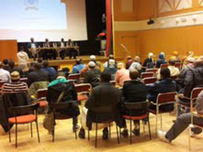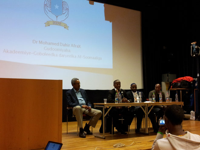 Sabti, November 09, 2013 (HOL) — Xaflad weyn oo lagu soo dhaweynayay Akadeemiye-goboleedka Af-Soomaaliga (AGA) iyo guddoomiyeheeda, Dr. Maxamed Daahir Afrax oo booqanayay Sweden ayaa waxaa lagu qabtay xarunta weyn ee shirarka Folkets Hus (Guriga Ummadda) ee ku taalla magaalada Stockholm, caasimadda Sweden.