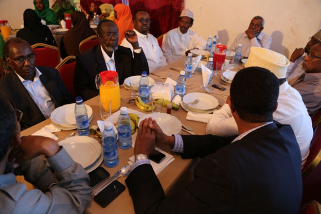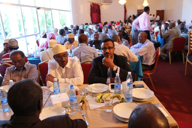 Talaado, Oktoobar 15, 2013 (HOL) — Madaxweynaha Somalia Xasan Sheekh Maxamud, guddoomiyaha baarlamaanka, Maxamed Sheekh Cusmaan Jawaari iyo ra’iisul wasaaraha xukuumadda, Cabdi Faarax Shirdoon (Saacid) ayaa maanta munaasabad qado-sharaf ah u sameeyey xildhibaannada golaha shacabka, waxaaba kasoo qaybgalay ra’iisul wasaare ku-xigeenka, xubno ka tirsan golaha wasiirrada iyo xubnaha baarlamaanka.