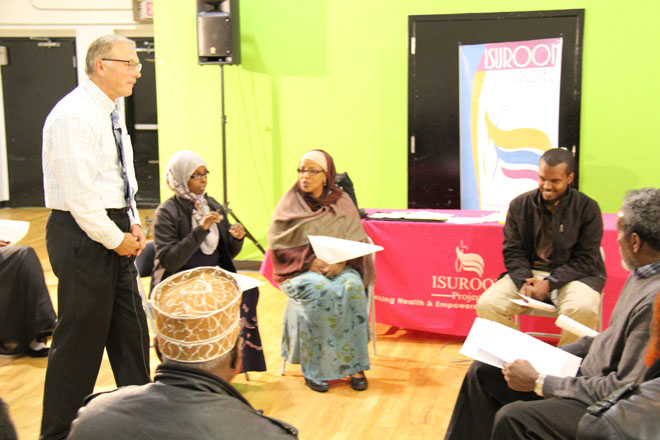 Kulankan doodad ah waxaa soo qaban-qaabiyay hay’adda ISUROON ee u ololeysa caafimaadka dumarka iyo shaqaaleynta Soomaalida ee gobolka Minnesota ku nool, waxaana fududeynayay afhayeenkii golaha wakiilada gobolka Minnesota, Prof. Steve Sviggum oo hadda ah macallin machadka Humphrey ee jaamadda Minnesota ka dhiga culuunta siyaasadda.