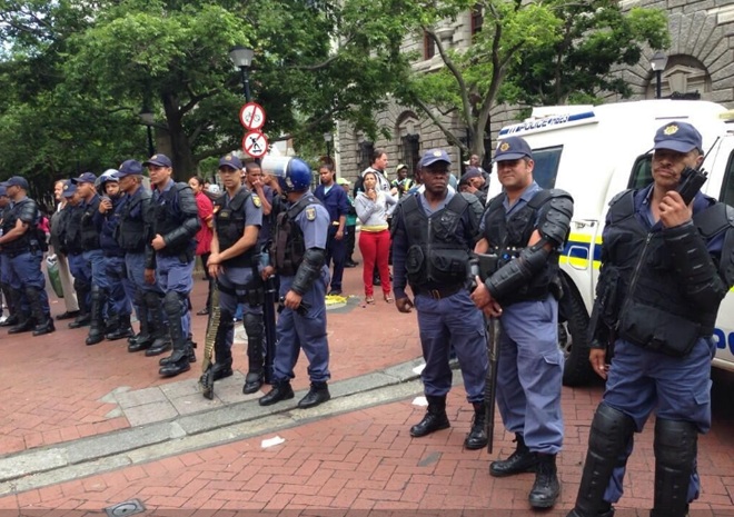 Dadka bannaan-baxayay ayaa markii dambe isugu tagay albaabka hore ee xarunta gobolka Western-Cape iyagoo sitay boorar ay ku qoran yihiin ereyo lagu aflagaadeynayo Hellen Zille oo ah gabadha guddoomiyaha ka ah ururka Democratic Alliance (DA), ahna guddoomiyaha gobolka Western -cape oo ah gabar caddaan ah oo inta badan lagu yaqaanno inay kasoo hor-jeeddo xisbiga ANC oo ay inta badan dadka madowga ah taageeraan.