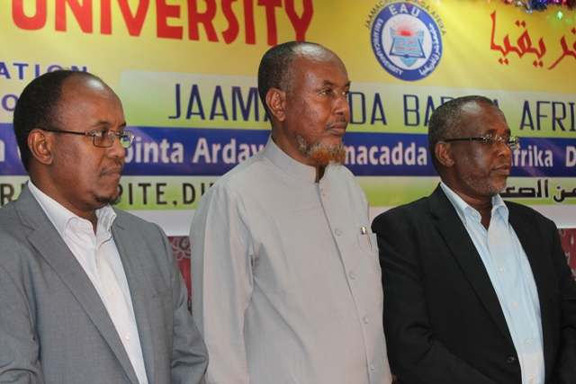 Intaas kaddib guddoomiyaha jaamacadda ayaa natiijooyinka ardayda qalin jibeyey iyo macluumaad kale oo la xiriira waxbarashadooda, wuxuu ku wareejiyey guddoomiyaha golaha sare ee maamulka Jaamacadda Bariga Afrika Aadan Sheekh Doon.