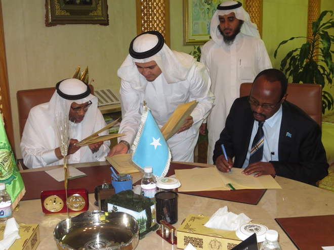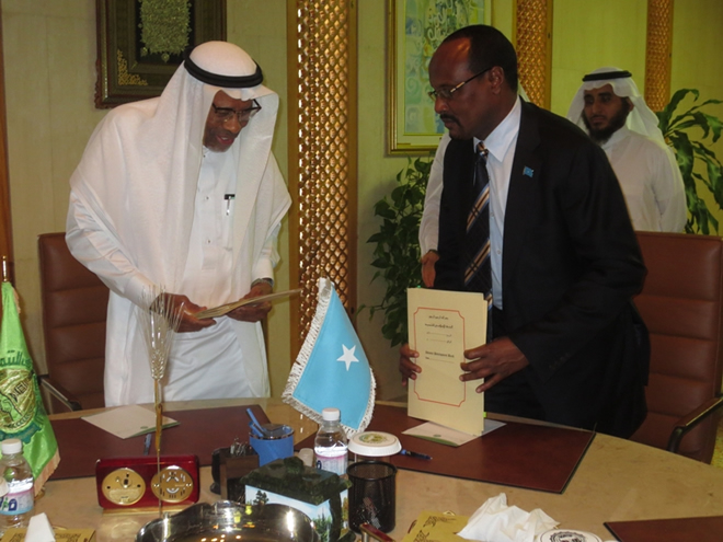 Isniin, September 02, 2013 (HOL) — Xukuumadda Soomaaliya iyo Bankiga Islaamka ayaa maanta heshiisyo ku kala saxiixday magaalada Jeddah ee boqortooyada Sucuudi Carabiya, iyadoo halkaas ay ku sugnaayeen wafdi uu hoggaaminayo ra’iisul wasaaraha Soomaaliya, Cabdi Faarax Shirdoon (Saacid).