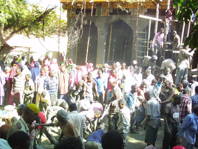 “Waxa aan ka shaqeyneyno waa masjid wax kale ma'aha, cid kasta oo wax ku darsata waxaa ay ku xisaabtami doontaa meel Aakhiro, sidaa daraadeed dhamaanteen waa in aan u istaagnaa sidii aan masjidka u dhisi laheyn,'' ayuu yiri Cismaan Caado.