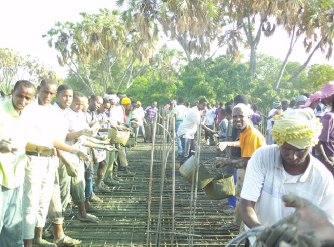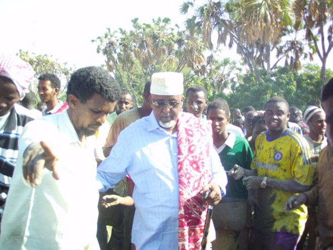 Jimco, September 20, 2013 (HOL) — Ugaas C/raxmaan Ugaas Khaliif iyo boqollaal dadweyne ah oo isaga kala yimid xaafadaha magaalada Beledweyne ayaa maanta si wada jir ah uga qeyb qaatay dhismaha qeybtii koowaad ee masjidka Bardaha ee magaalada Beledweyne.
