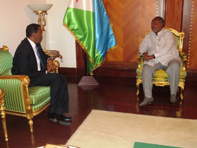 Madaxweynaha dalka Jabuuti ayaa ku ammaanay dowladda dadaalka ay ugu jirto bad-baadinta ummadda Soomaaliyeed, waxaa kaloo uu madaxweynuhu sheegay in dalkiisu uu sii xoojin doono xiriirka kala dhexeeya Soomaaliya iyo gacanta kaga aaddan xasilloonida dalka.