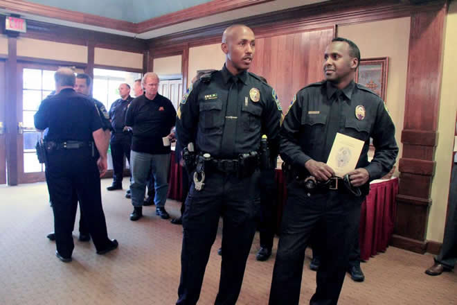 Sabti, 03 August 2013(HOL)—Taliska ciidanka booliska gobolka Minnesota gaar ahaan waaxda Metro Transit Police ayaa soo dhaweeyay 2 sarkaal oo Somali-America ah, kuwaas oo ka mid ahaa 19 saarkiil cusub oo shalay loo dhaariyay ka mid noqoshada ciidanka booliska gobolka.