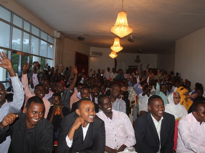 Axad, July 14, 2013 (HOL) — Ra’iisul wasaaraha Soomaaliya, Cabdi Faarax Shirdoon (Saacid) ayaa galabta kulan ballaaran la qaatay dhallinyaro isugu jiray rag iyo dumar, kuwaasoo tiradoodu ahayd 250, kana socday ururrada dhallinyarada, ardayda jaamacaddaha iyo kuwa dugsiyada sare ee gobolka Banaadir.