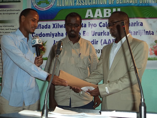 Guddoomiyihii hore ee ururka qalin-jebiyeyaasha Jaamacadda Banaadir, Dr. Maxamed Isxaaq Cilmi oo munaasabaddaas ka hadlay ayaa sheegay in muddo sadex sano ah oo uu xilkaas hayay uuna ku faraxsan yahay inuu ku wareejiyo hoggaan cusub oo howsha ururka dar-dar-geliya.