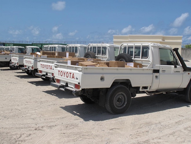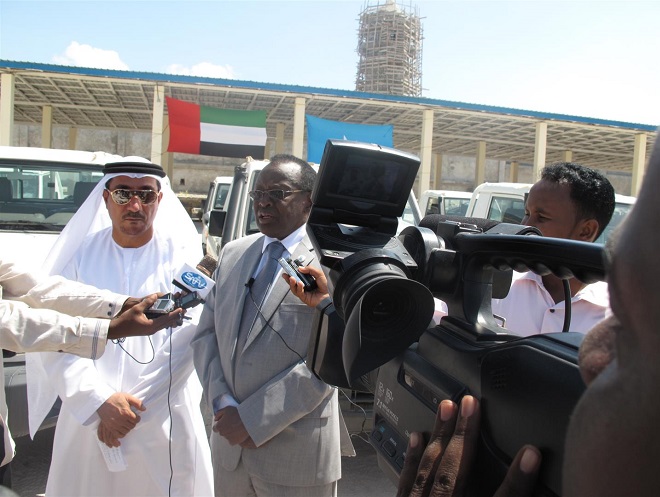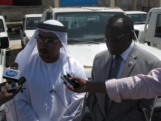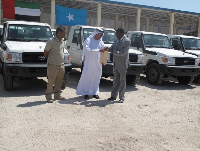 Sabti, Abriil 19, 2014 (HOL) — Dowladda Imaaraadka carabta ayaa qalab kala gaddisan maanta ugu deeqday ciidamada ammaanka Soomaliya. Deeqdan oo isugu jirata, direyska ciidamada iyo gaadiid ayaa waxa danjiraha Imaaraadka Carabta u fadhiya Soomaaliya uu ku wareejiyay dowladda Soomaaliya.