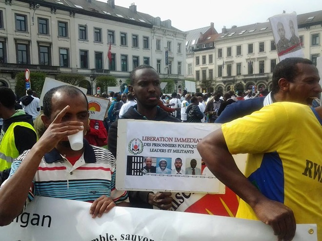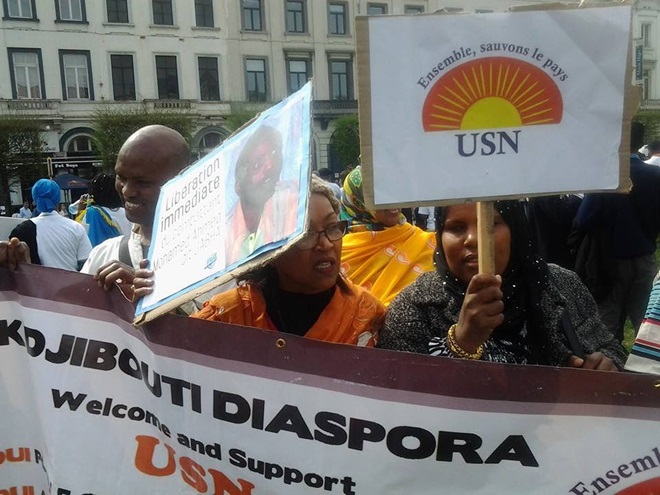 Bannaanbaxa ayaa waxaa ka qaybgalay boqolaal ka tirsan jaaliyadda Jabuuti ee ku nool Qaaradda Yurub, iyadoo dibadbaxayaashu ay wateen boorar ay ku masawiran yihiin xubno mucaarad ah oo ay dalbanayeen in lasii daayo.