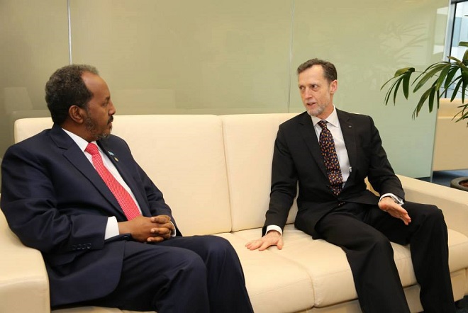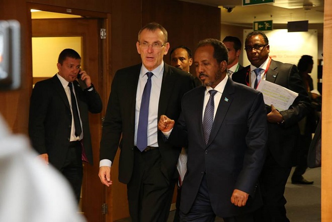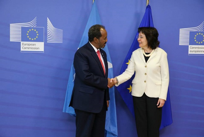 Madaxweyne Xasan Sheekh oo ka mid ahaa madaxdii Afrika oo ka qaybgalay shirkii Midowga Afrika iyo Midowga Yurub ayaa sheegay la kulmay mas’uuliyiin ka socday dalalka Yurub qaarkood, kuwaasoo uu kala hadlay gacan siinta dowladda Somalia.