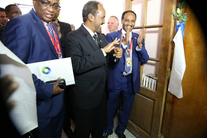 Jimco, Abriil 04, 2014 (HOL) — Madaxweynaha Somalia, Xasan Sheekh Maxamuud ayaa xariga ka jaray safaaradda Soomaaliya ee dalka Beligum oo dhawaanahan uu ka socday dayactir, waxaana ay noqonaysaa safaaraddii ugu horreysay oo Somali ay leedahay oo la dayactiro.