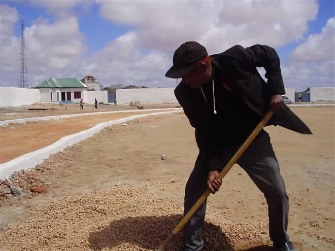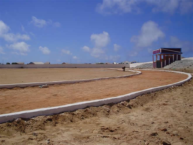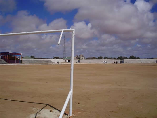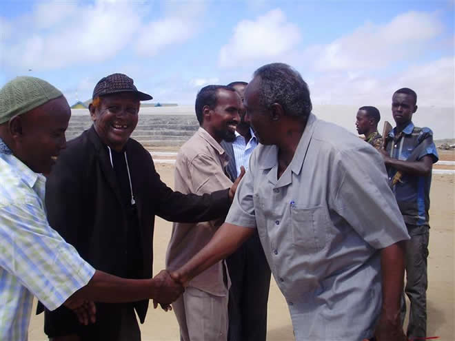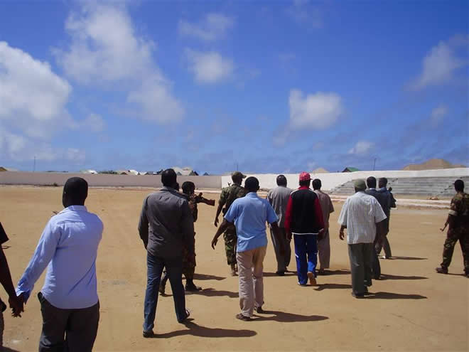 Sabti, Abriil 05, 2014 (HOL) — Guddoomiyaha magaalada Kismaayo, Ibraahim Maxamed Yuusuf (Timojilic) iyo wafdi uu hogaaminayo ayaa maanta soo kormeeray garoonka kubadda cagta ee degmada Kismaayo ee loo yaqaan Waamo Studium, kaasoo mudooyinkii u danbeeyay ay ku socdeen howlo dib u dhis ah.