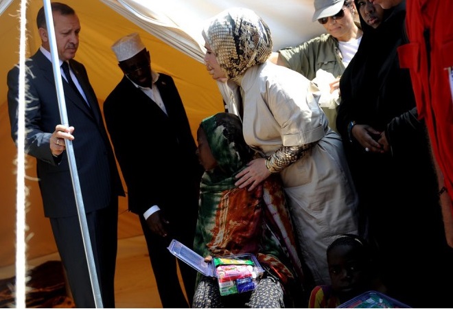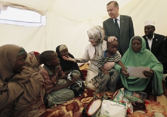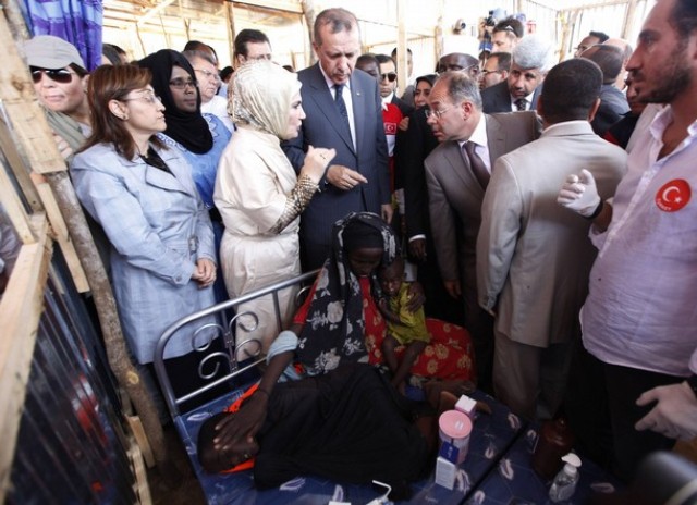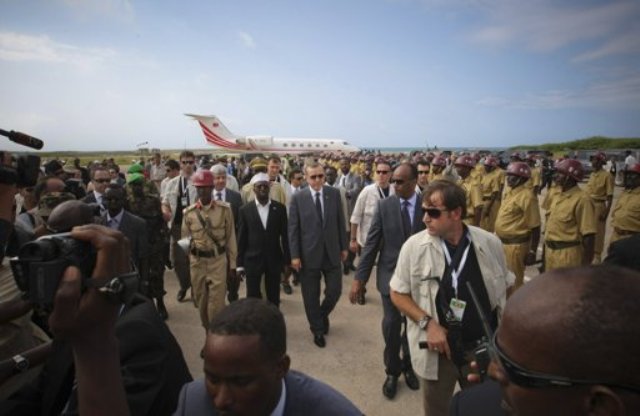 Erdoğan ayaa yimid Muqdisho 19-kii Ogoosto 2011-kii, xilligaasoo ay Somalia ka jireen abaaro sababay macluul ay u dhinteen dad badan, kuwo kalena ku qasbay in deegaannadii ay ku noolaayeen ay kazoo barakaceen, kuwaasoo u badan Koonfurta Soomaaliya.