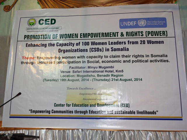Tababarkan oo ay soo qaban-qaabisay hey'adda CED ayaa soconaya saddex maalmood, waana tababarkii u horreeyay noociisa oo muddo ay hay'addu soo qabanqaabiso, iyadoo muddada uu soconayo lagu baranayo arrimaha xuquuqda haweenka, doorka haweenka kaga aaddan bulshada, dowlad-wanaaga, waxbarashada iyo arrimo kale.